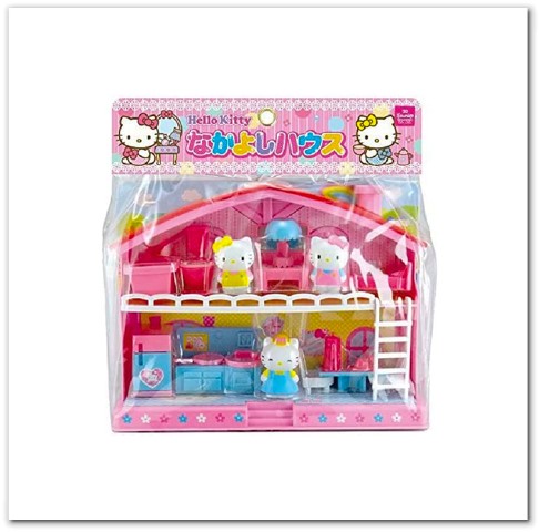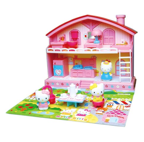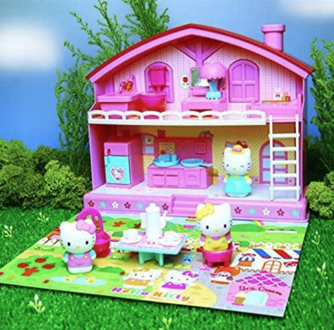 - Set includes the following: 1 Two-level house, 3 Hello Kitty characters (mother and twins),