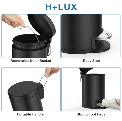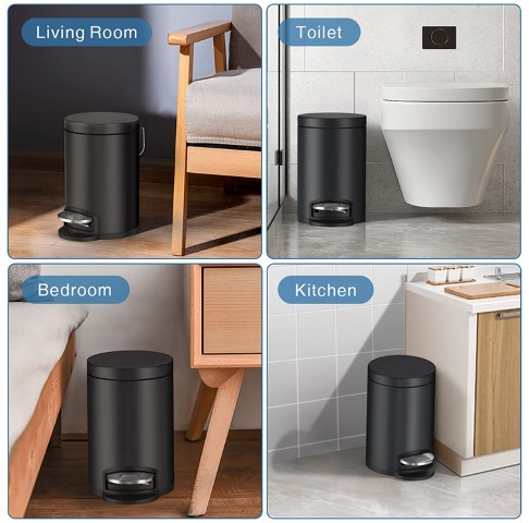 mini trash can with lid is more suitable for bathroom or toilet use, it can restrain the smell effectively. Soft close lid does not slam and make noise. Removable inner bucket is easier for trash disposal and cleaning, so you don’t have to buy those expensive garbage bags. Durable steel pedal releases your hands without lifting the lid to dispose of garbage. Mini size and capacity fits well in relative limited space, it’s suitable for bathroom toilet, washroom, bedroom, kids room, office desk, countertop and corner.