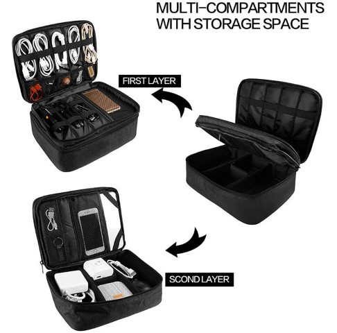 econd layer – Design the layouts as you wish to keep all your electronic travel accessories in perfect order.Adjustable padded dividers verclo could organized all your gadgets. Perfect to hold larger accessories like power bank, wall charger, cellphone, Mouse and 1 pocket for 9.7/10.2/10.5 11inch tablet ipad;